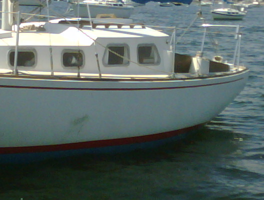 – – If you want to find your Bristol 27’s hull number and year built, you might be able to check the hull topsides near the transom. I found mine far aft on the starboard side. Below are some photos of mine: