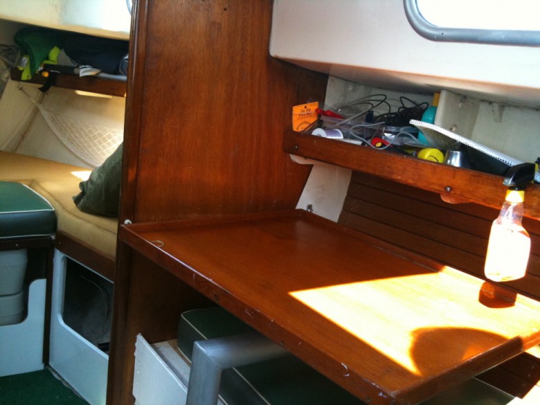 - Generous storage & drawer space main cabin … 2 full-length shelves, storage under berths, large bookshelf, bedding storage behind backrests; forward cabin … 3 drawers, bin storage under berths, storage cutouts in berth fronts, 2 full-length shelves, rope locker. Bilge storage … thru cabin-sole trap.