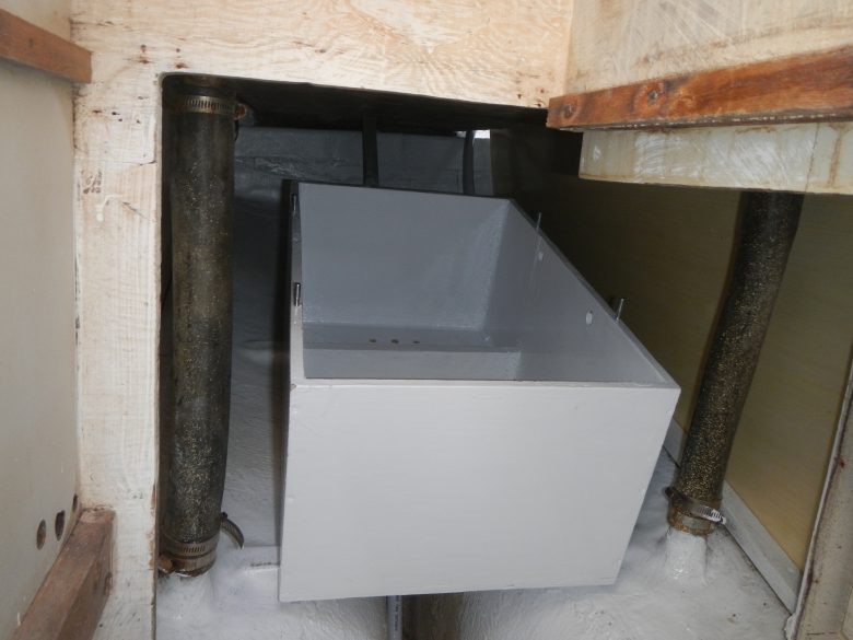 New battery box installed below the cockpit and mounted firmly to stringers secured to the hull.