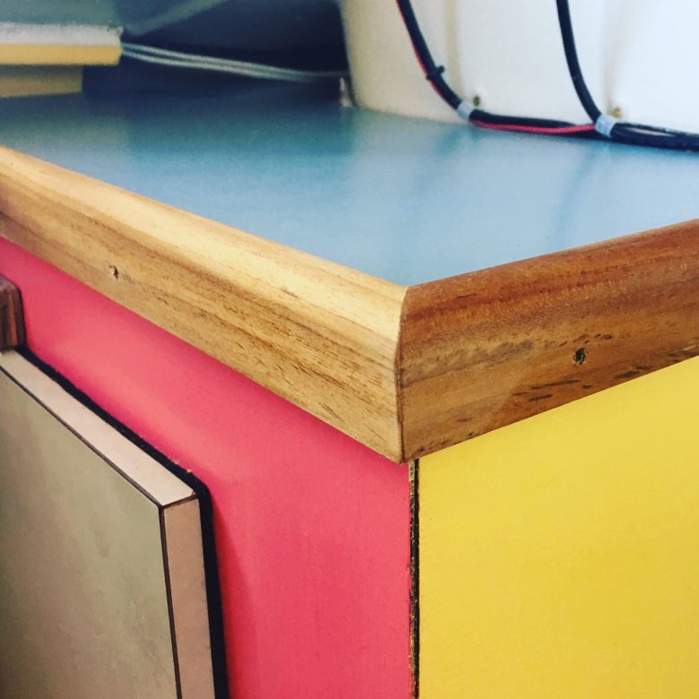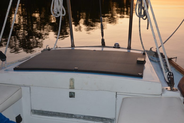 We replaced the porthole gaskets and that made the boat very dry. We finally had to replace the original mainsail that was over 50 years old. We got a new one from Presion sails. The Jib and Genoa are still original but they still performed on our trip to Key West. If we get them replaced our upwind sailing will improve, I’m sure. We gave the interior some fresh colors and cut a notch into the countertop to accept a Yeti cooler because we use the old coolbox for dry storage. There was enough Iroko left over to make some anchor chocks on the foredeck for plow and Fortress anchors. I got a lot of complements on this at the marina and again, super cheap upgrade.