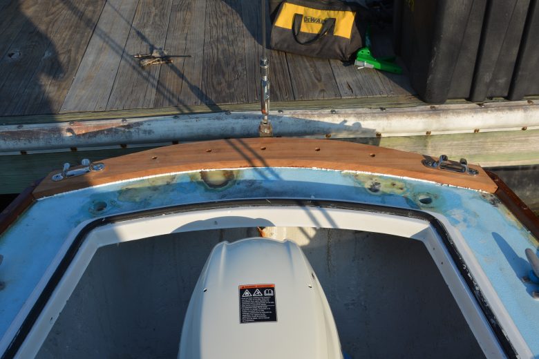 January 2, 2021 – Since our last update about 18 months ago a lot has happened. We replaced all of the toe rail with Iroko and used mechanical screws with fender washers on the underside along with 5200. This was very labor intensive but it was one of the lowest cost improvements we made and it greatly reduced the amount of rainwater that found its way into the bilge.