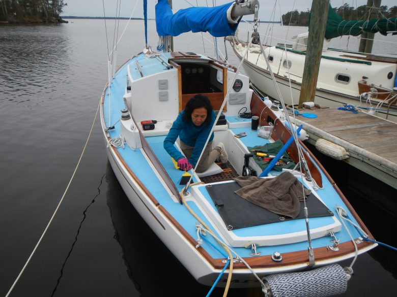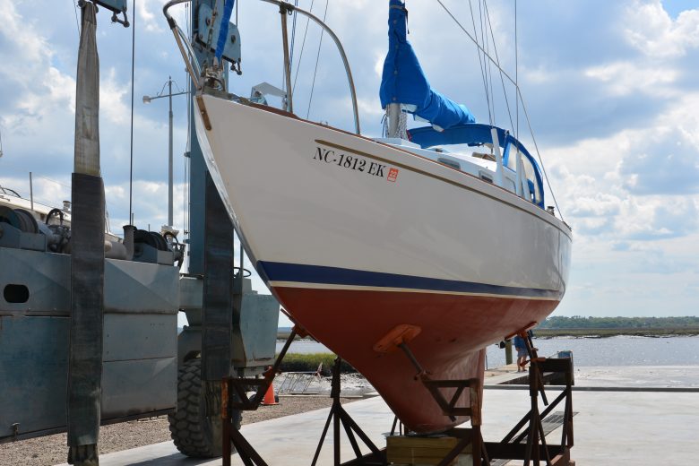 July 17, 2019 – We are back on the water. Baitoningsih is in her new home at Gottschaulk Marina, Camp Lejeune, NC on the New River. We are still working on things but our focus for the summer is practicing our sailing skills for our trip to the Bahamas in January.