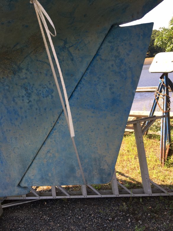 I had to drop the rudder for this job, which required digging a hole below the boat in order to deship the rudder. That’s because there’s a long bronze rudder stem that extends from the top of the rudder, through the cockpit/below cockpit and into the cockpit sole.