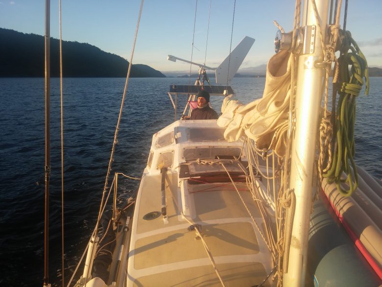 And things improved… not immediately, but once we left Magellan we had some days without rain, some days with no wind at all where we could motor for long and peaceful hours, there was one day, I remember it very well, one day that we sailed and we enjoyed it, we turned the engine off (even tacking upwind we always had the engine helping), there was a decent breeze from the south, it was sunny, we put music from Silvio Rodriguez and looked at the sun, the mountains, the shiny water and we felt alive, we were still very, very far from our destination, still south of Eden, but it felt sooo good, the light of the sun fell on us like a rain of hope and fulfilment. We had left the worst of it south, that day, when we arrived to our intended anchorage, we were almost sad to drop the anchor and stop, we were not wet, not exhausted, not worried. I remember we had that one beautiful day.
