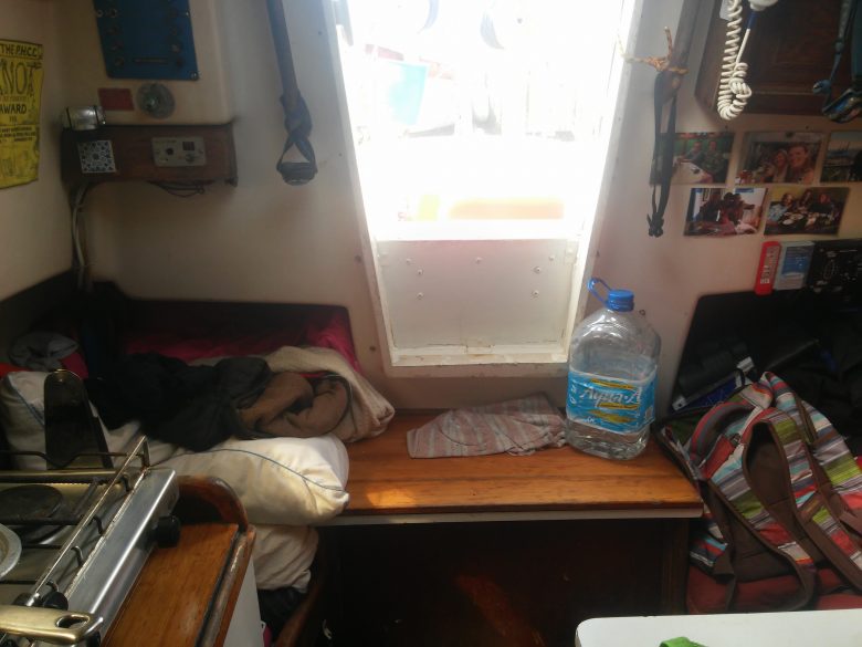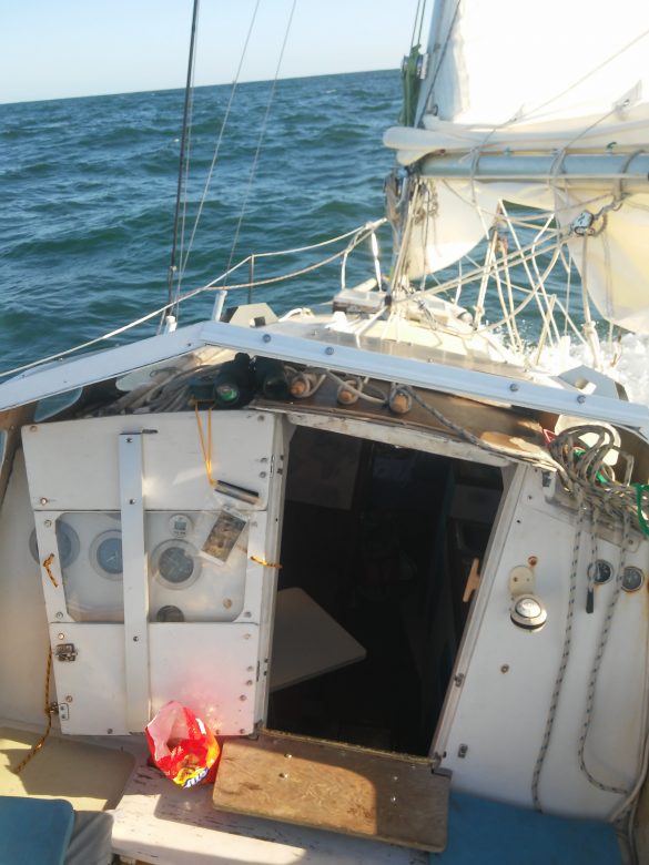 Steppin’ Out is a well-used and well proven Bristol 27, the usual hard core, old school offshore sailboat: Cheap, sturdy as hell, reliable as an ox and slow, very slow. She has crossed the Atlantic twice in my hands and by now I have modified every weak point and every possible trouble source, the list of small modifications is long and there is no point on going through it, but it can be assumed that the mast won’t likely fall, the hull probably won’t break and the keel and rudder tend to stay where they should, as opposed to some distressing newer boat tendencies.