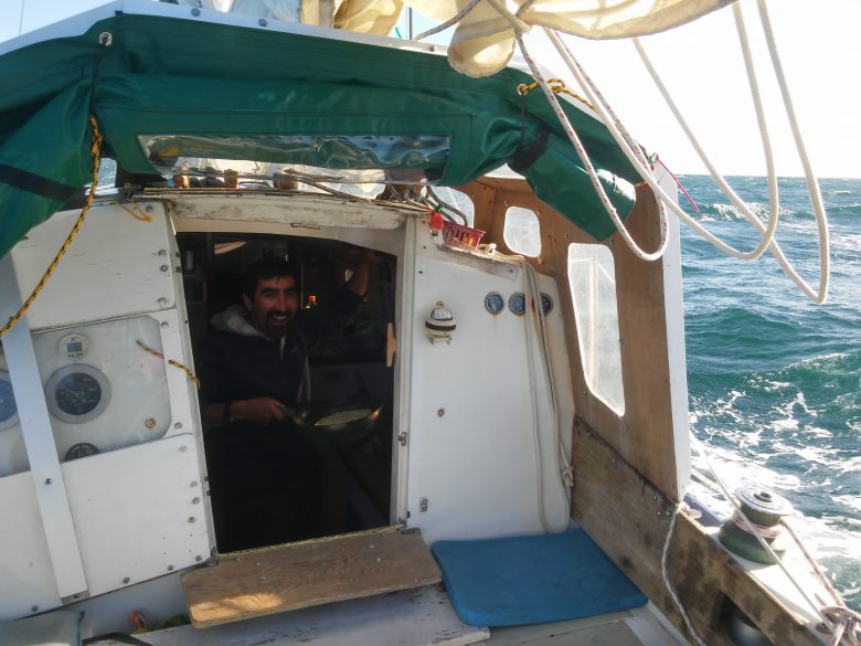 The first technical sailing challenge is faced right south of Peninsula Valdez, under the premise of “anything with less than 50 knots is a good weather window”, we managed to skip Bahia San Blas and Madryn. Then the problem was that all our strategy was based on staying ridiculously close to the shore, and as it turns out, Peninsula Valdez is big, and it ends pretty far offshore and the direction towards the shore is a straight west bound course, right against the prevailings. But… according to the forecast, we had 10 hours of north before the next westerly festival, this is when the always available satellite forecast makes all the difference, we had 10 hours to make 60 miles to the west, had we not known of the arrival of the Westerlies we might have taken it easy, we would have sailed relaxed towards the west. In our case, we turned on the engine, hoisted as much sail as we could, disconnected the self-steering and made 6 knots average on a wild reach right towards the shore, no questions asked, all steam full ahead.
