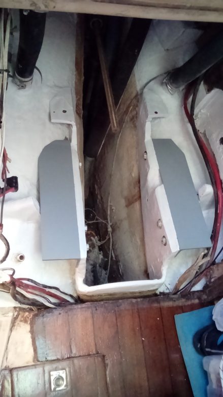 The engine cost was 600 pounds plus our mercury 5hp outboard that the seller was nice enough to take as part of payment, all the parts and pieces were bought for other 500 pounds approx. Originally Steppin had an atomic four inboard so the main structures were there: the shaft tube and the supports, although the supports had to be modified a lot to welcome the new machine.