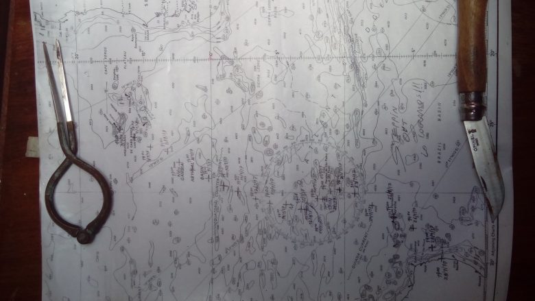 South of the equator, the south-east trades started to blow and our longitude, that had painstakingly gained one degree to the east, it was now 30 degrees west. From there, sailing a fast sidewind run to Brasil was totally possible, and we made some of the best runs on the journey, with well over hundred miles a day, on stable, reliable winds…