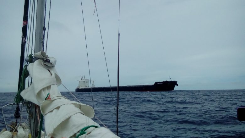 The fifth day we saw a cargo ship passing, and the only thing that I thought of, was to ask for a weather forecast, which gave us no hope… once the ship was gone I thought “what an idiot!! I should have asked for jerry cans of diesel!!”. But it was the first ship that we saw in many days, so our chances of getting a new opportunity were rather scarce.