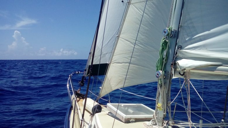 Normally my phylosophy would be “sit down and wait for stable wind”, but as it turns out, we were actually moving towards the west north west at speeds varying between 1 and 3 knotts… which is not nothing, specially when we had already sailed fairly far west to avoid the calms that we saw south of cape verde, at the beginning of the journey.