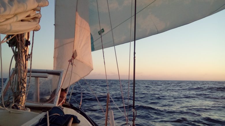 On the sixth day, we had made a total progress of some 160 miles through the calms (1.1 knotts average…), all of them to the south-east. This was a remarkable victory against the current, but it came with a huge price tag: I’ve had almost no sleep on a never ending battle and, whereas I was fading away real fast, the ocean had endless energy for the fight. Em tried to help by feeding me, comforting me, or providing her bulletproof optimism, but I’m the only one able to sail the boat and there was no way around it.
