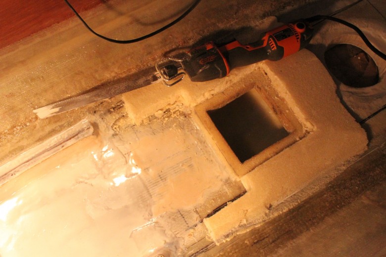 So, I’ve given over major portions of the bilge area above the diesel tanks to foam. The foam serves as a support for the cabin sole as well as support for the cabin sole access hatches. I also used foam to build up the “upper sole” area (as I call it); the area between the navigation-station and galley. I’ll go into much more detail in the “Cabin Sole” project section, but suffice it so say that my bilge stowage is down to a very small area in the center of the diesel tank. Likely, I won’t ever keep things here unless the boat is severely over burdened.