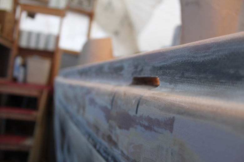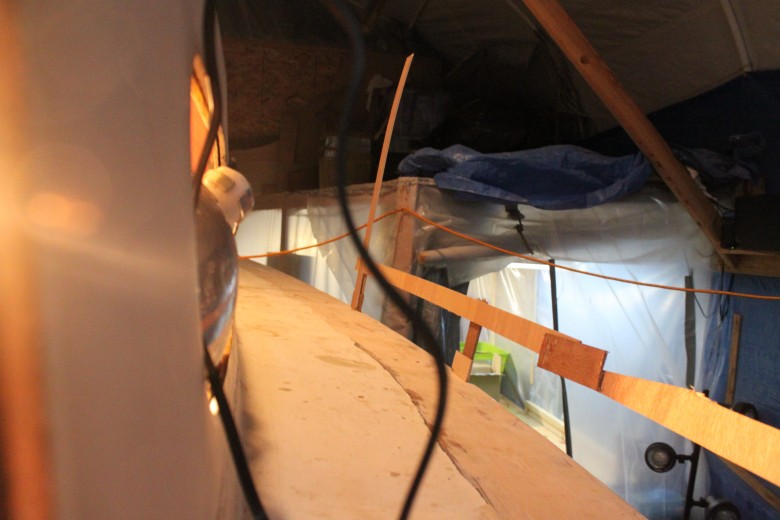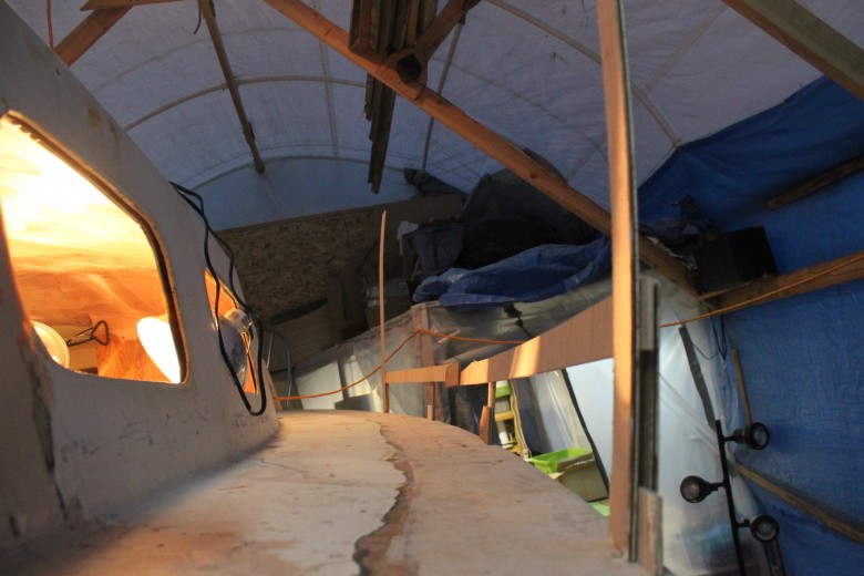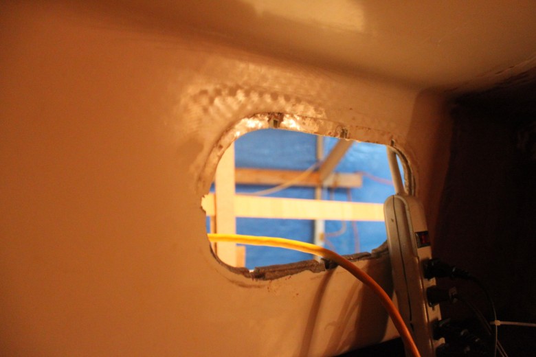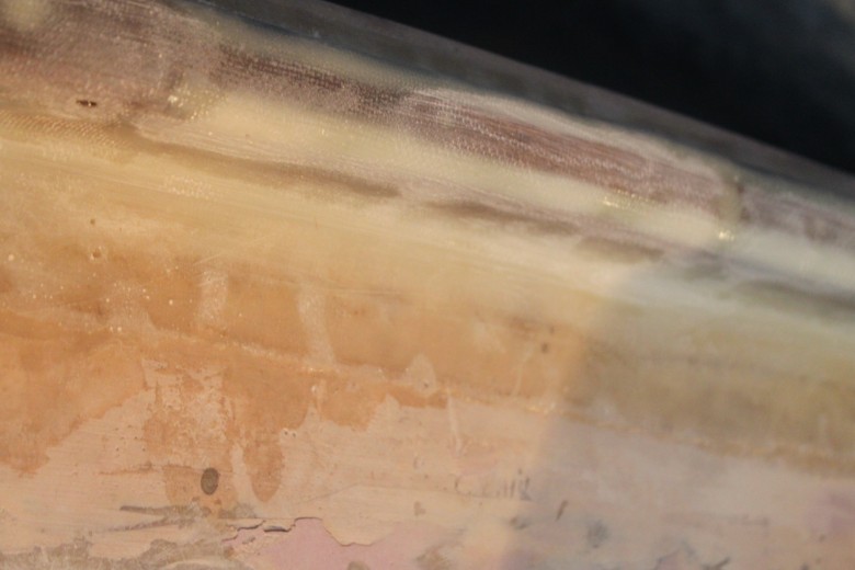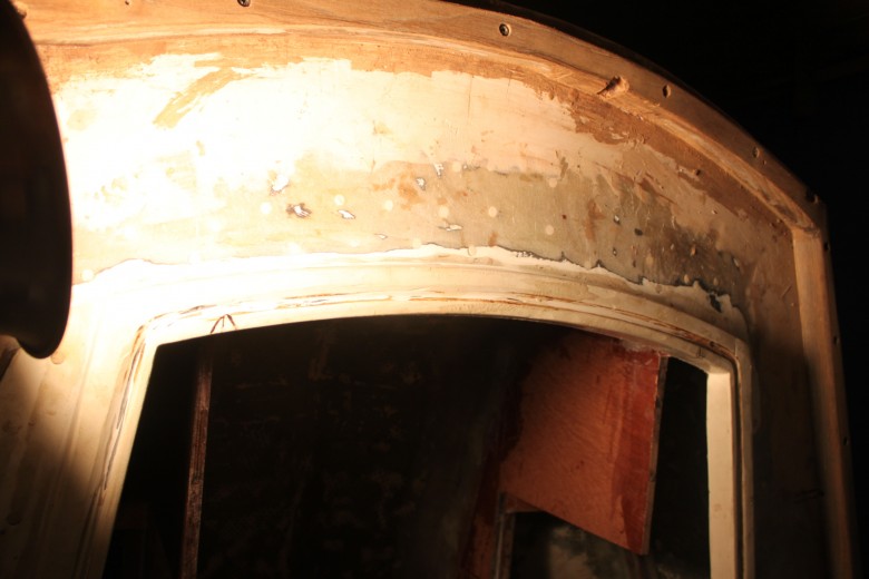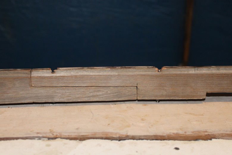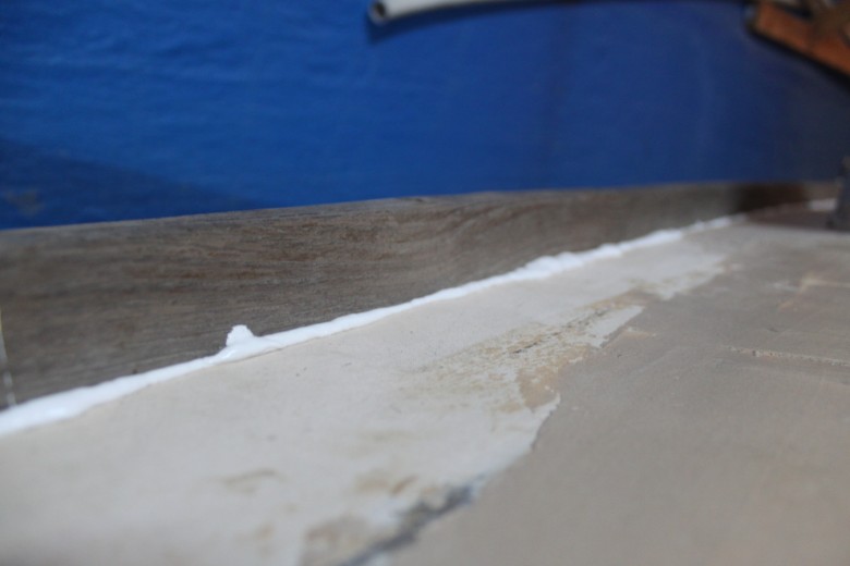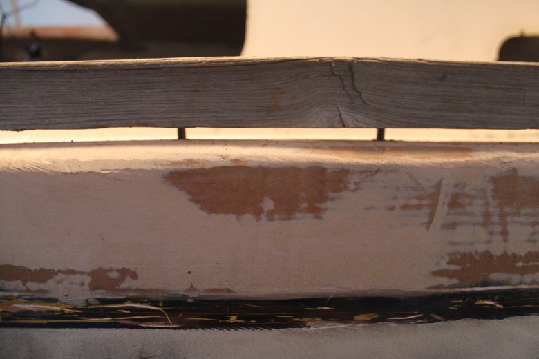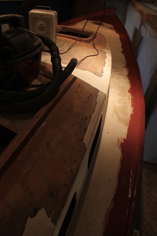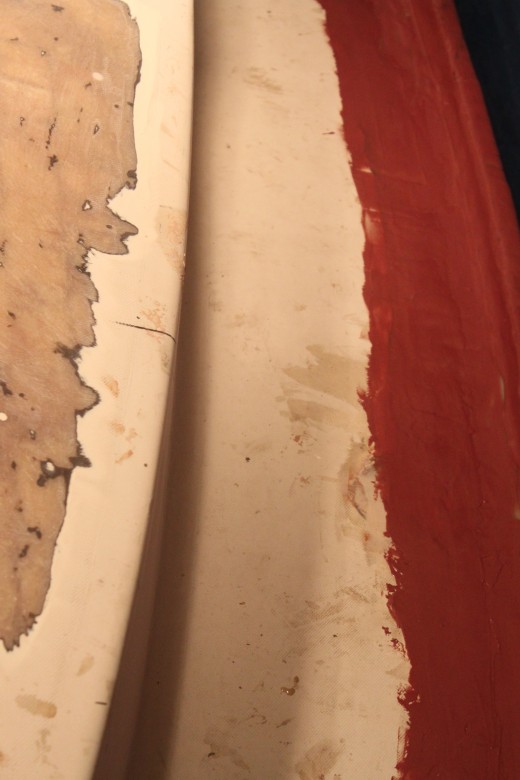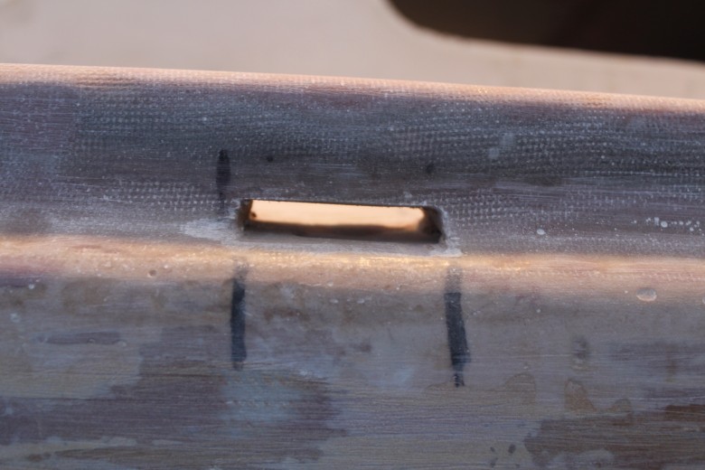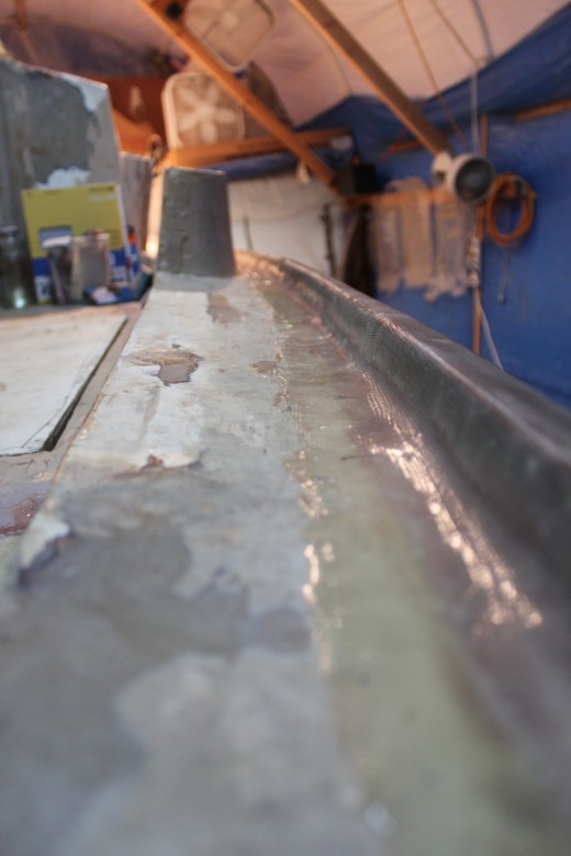 If you look down the port toe rail, you can see how the toe rail looks “bumpy” due to the unevenly spread epoxy thickener below