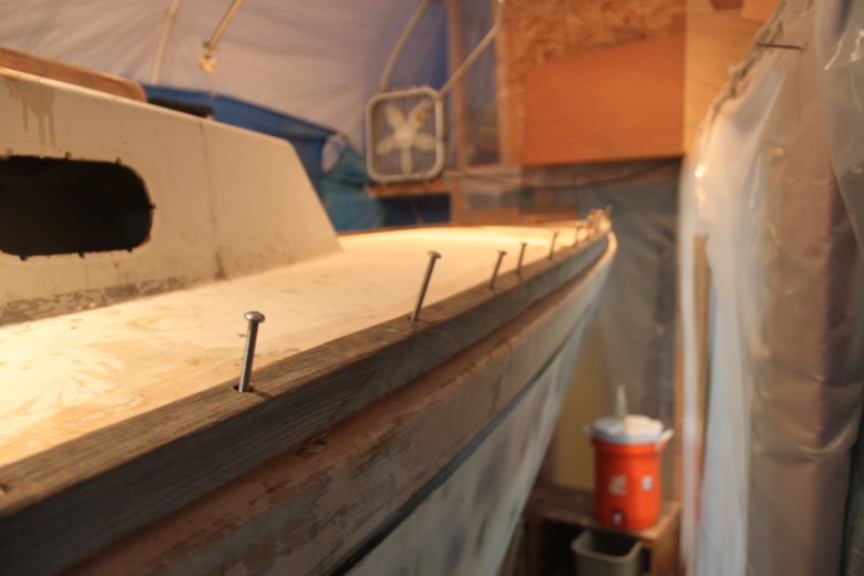 Over the past few days I’ve been working on installing the toe rail. I’ve had my friend Ben Young working with me for the past 3 nights. Overall, the toe rail took me 4 days to fully install on deck. I’ve decided to give an overview of what I did each day to paint a picture of the steps required to complete this project: